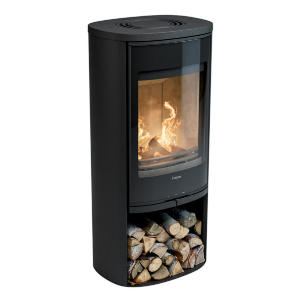 Hold orden på dit brænde, med det praktiske brænderum under ovnen.