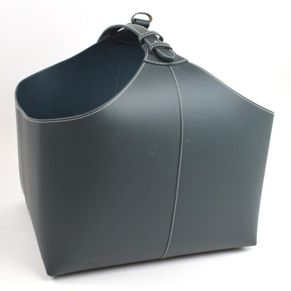 Elegant læder brændekurv i støvet blå.