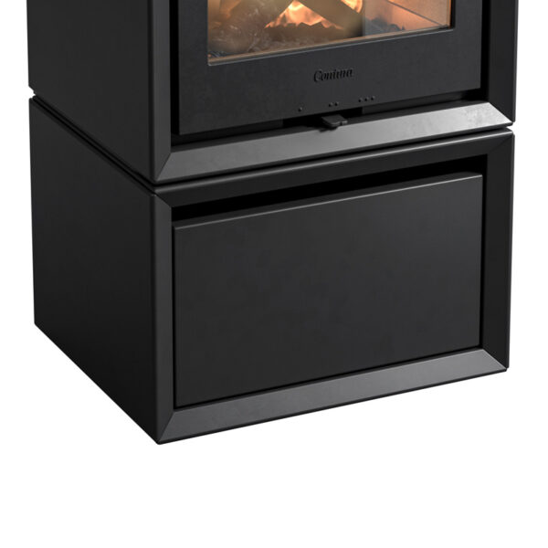 Sort brændefagslåge med soft-close til Contura 130 brændeovne, med brændereol.