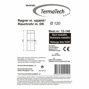 Afstandskravet til brændbart er 3 gange rørets diameter – dog minimum 36 cm.